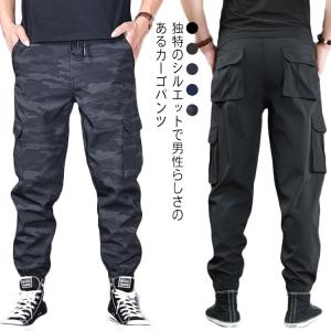 カーゴパンツ メンズ スリム テーパードパンツ カモフラージュ イージーパンツ 春夏秋 迷彩柄 カモフラテーパードパンツ 美脚 細身 全4色 ゆったり