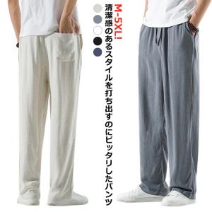 リネン リラックス リネン ワイドパンツ メンズ 涼しい リネンパンツ 夏 イージーパンツ 綿麻 ロングパンツ ボトムス パンツ ウエストゴム 薄手