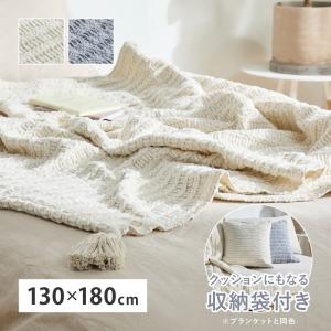 ブランケット アンネ 約130×180cm 270105010 ひざ掛け スローケット ニット調 クッション 収納袋付き 洗える