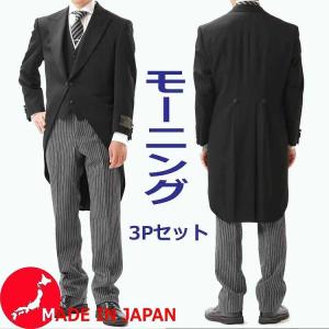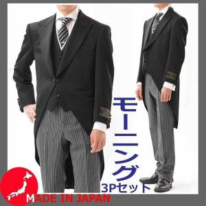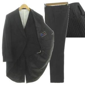 スリーエム THREE-M モーニングコート 燕尾服 スリーピース ジャケット ピークドラペル ベスト パンツ ブラック ストライプ グレー