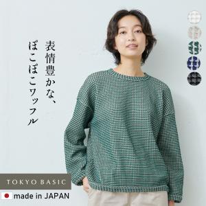 トップス レディース 40代 上品 50代 ウェーブ コットン ワッフル モックネック トレーナー 日本製