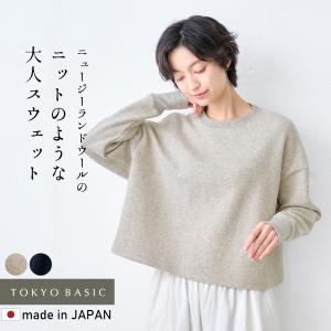スウェット レディース 長袖 トップス ニュージーランドウールコットン クロップド丈 トレーナー 日本製 40代 50代