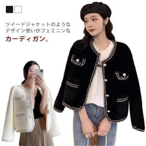 ツイードジャケット風 カーディガン レディース アウター ふわふわ ニットカーディガン ジャケット 羽織り 春 秋 冬 暖かい 可愛い 長袖 フォーマ