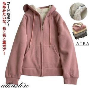 裏ボアジップパーカー ボアパーカー ボア ブルゾン アウター コート レディース 冬 ボア ジャケット パーカー 防寒 もこもこ ジップ あったか