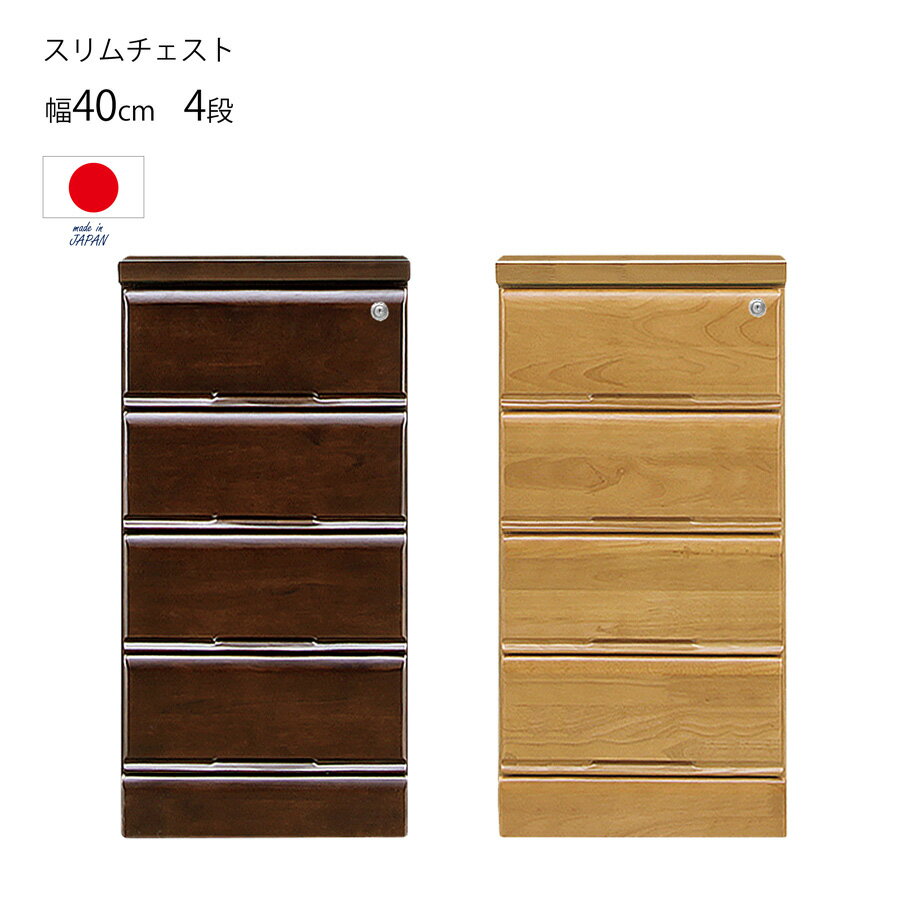 幅40cm 4段 チェスト 鍵付き ローチェスト スリム 隙間収納 すき間収納 国産 完成品 木製 たんす 箪笥 収納家具 防犯 貴重品 リビングチェスト 鍵付きチェスト おしゃれ 一人暮らし 新生活