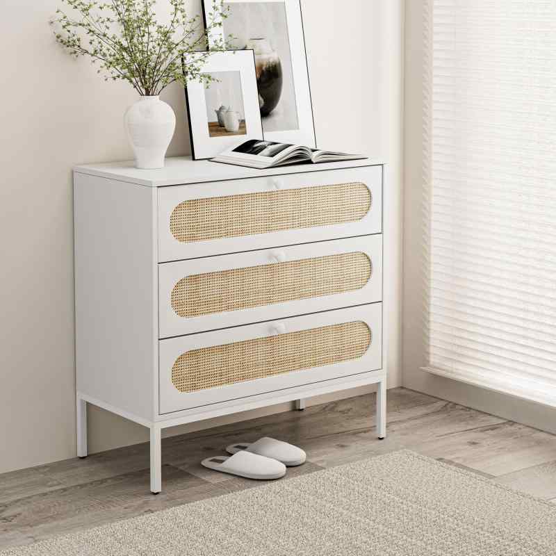 IKIFLY 収納チェスト 引き出し 木製 タンス チェストラタン調 キャビネット 3段階引き出し サイドボード 衣類収納 リビング収納 リビングボード 収納ボックス 3段 おしゃれ 幅80 和風 洋服 収