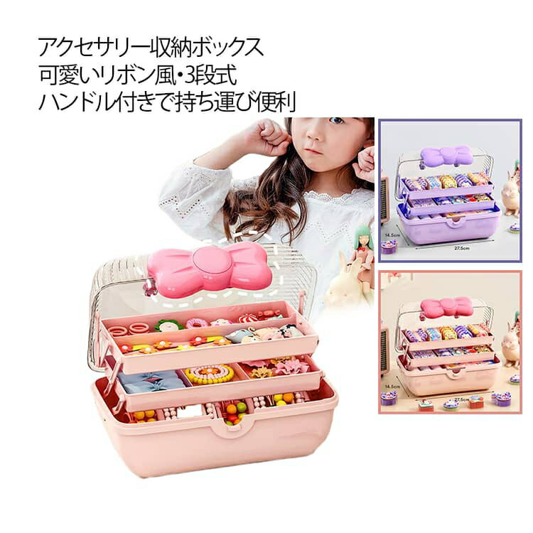 かわいい ヘアゴム リボン アクセサリー収納ケース 子供 3段 アクセサリーケース たっぷり ヘアピン 髪飾り 女の子 大容量 整理 アクセサス キッズ ハンドル付き 持ち運び オシャレ 子ども ギフト プレゼント クリスマス 誕生日 誕生日 送料無料