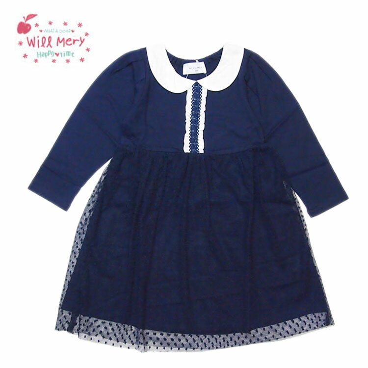 MERY]ウィルメリー[キッズ]フォーマルワンピース[95/110/130cm]N26351 ガールズ 女の子 女子 ドレス 発表会 入園 卒園 ピアノ 結婚式 ONEPIECE 春秋 レース 切替 チュール スカート ネイビー おしゃれ/丸高衣 piks