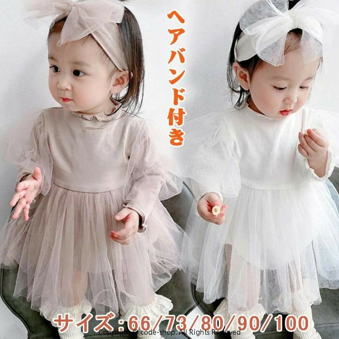 部分・ベビー ワンピース ロンパース ベビードレス 女の子 半袖 長袖 チュール ワンピース ヘアバンド付き ベビー服 女の子 秋 ワンピース フォーマル 白 ロンパース ベビー服 セレモニードレス 新生児 誕生日 1歳 出産祝い 贈り物 ひな祭り
