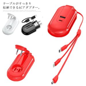 送料無料 急速充電器 コンパクト ACアダプター iPhone/Android/Type-C 充電ケーブル 収納 3in1充電器 5台同時充電 小型