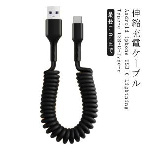 充電ケーブル 伸縮式 高速充電 送料無料 iPhone充電ケーブル USBケーブル USB-C ライトニングケーブル PD Apple Type-C