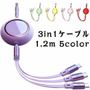 iPhone 充電 ケーブル 巻き取り ケーブル 3in1 巻き取り式 充電ケーブル USBケーブル 充電 ケーブル コード Lightning Ty