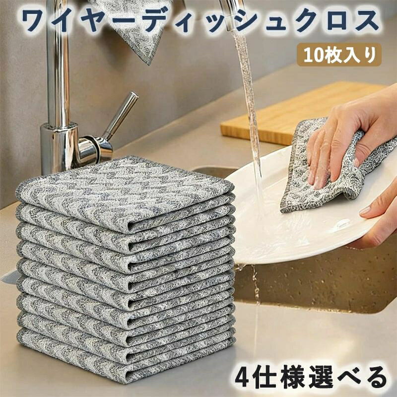 ワイヤーディッシュクロス 10枚セット 傷がつかない スチールウール キッチン スポンジ 鍋 フライパン 焦げ落とし シンク 掃除 鏡 ガラス 速乾 再利用可能 ウェット&ドライ 万能 クリーニングクロス