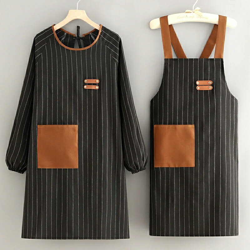 割烹着 エプロン 料理 保育士 秋 冬 ストライプ ゆったり おしゃれ ロング丈 あったか 防汚 前開き ポケット付き 防水 大きいサイズ 家事 長袖
