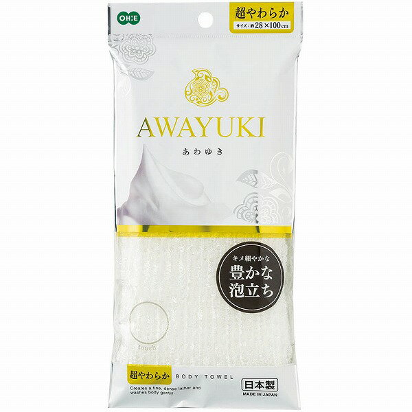 オーエ あわゆき ナイロンタオル 超やわらか WH ホワイト ボディタオル バス用品 28×100cm