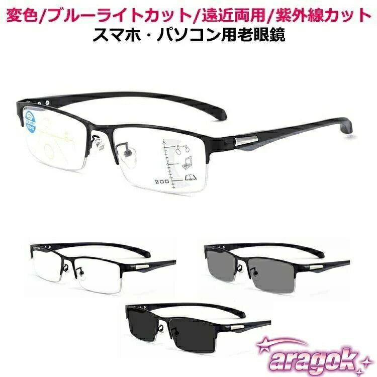遠近両用メガネ 老眼鏡 UVカット光サングラス 軽量累進多焦点レンズ ブルーライトカット レディース紫外線カット メンズシニアグラス 快適視界