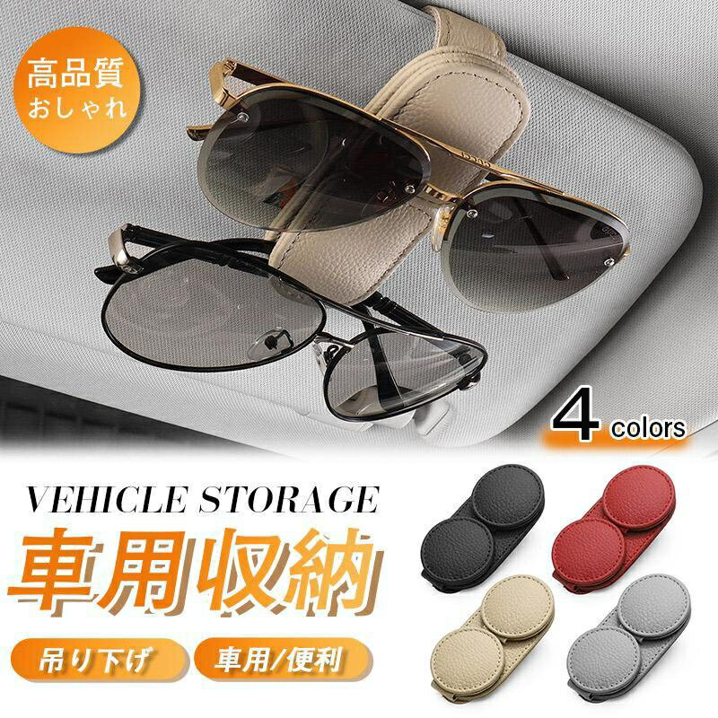 サングラスクリップ 車 メガネホルダー 車用 サンバイザー用 メガネクリップ カードホルダー 本革 車収納 同時2枚クラス収納 おしゃれ 便利