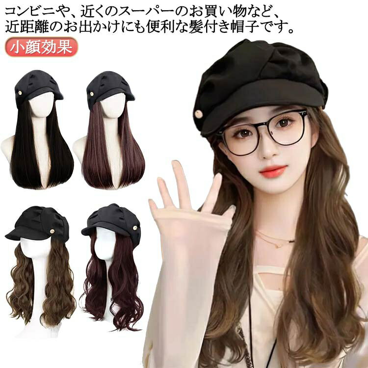 かぶるだけ キャップウィッグ かつら 帽子付きウィッグ 脱毛 毛付き帽子 ベレー帽ウィッグ ウィッグ付きキャスケット 小顔効果 キャスケット 医療用帽子 かつら ウィッグ付き帽子 髪付き帽子 ウィッグ キャップ レディース ロング巻き 日常用