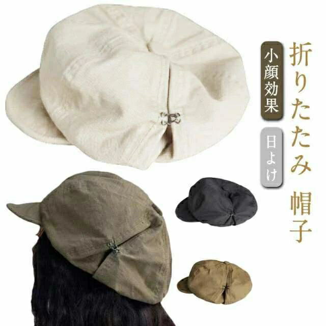 帽子 レディース キャスケット 綿 麻 遮光 折りたたみ 日よけ UV 帽子 小顔効果 大きいサイズ 大きめ 深め 涼しい 春夏 母の日
