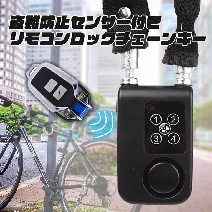 盗難防止センサー付き リモコンロックチェーン セキュリティ アラーム ワイヤレス リモコン付き 安全ロック 暗証番号 鍵不要 大音量 バイク 自転車