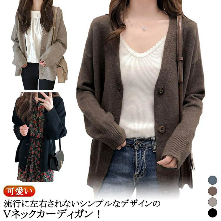カーディガン カジュアル ニット レディース 長袖 vネック グレー アウター グレー トップス ドロップショルダー 大人 きれいめ 秋冬 可愛い 無地 羽織り 黒 ニットカーディガン セーター オフィス