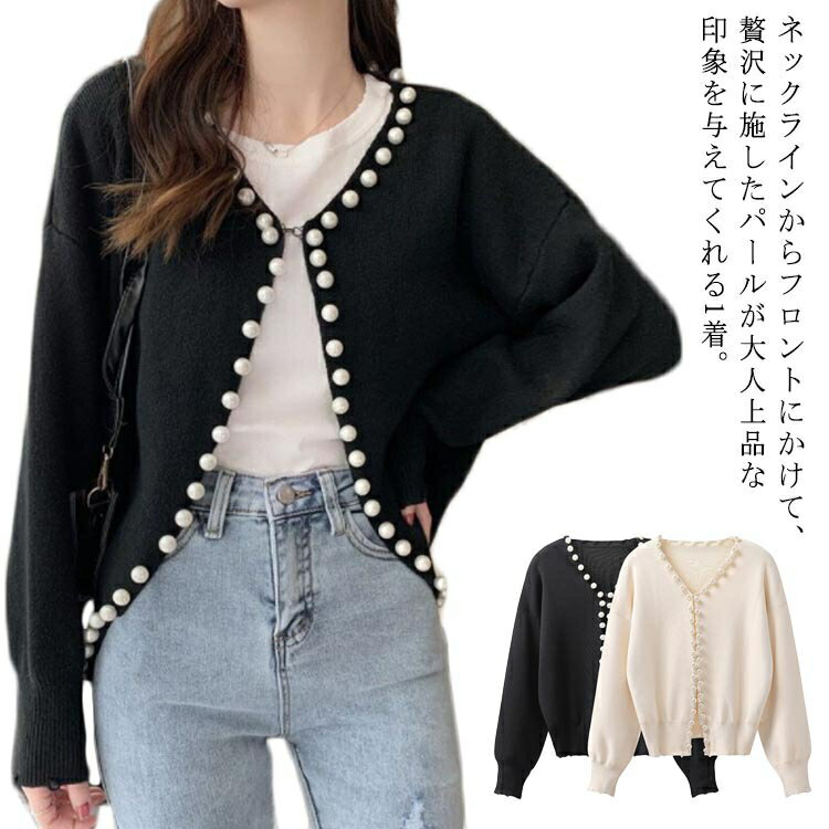 ニット カーディガン パール パールボタン カーディガン レディース 秋 冬 秋冬 長袖 ニットカーデ ニットセーター トップス クルーネック 羽織り 通勤 アウター ゆったり 大きいサイズ 秋冬 普段着 オフィス 着回し エレガント きれいめ カジュアル フェミニン OL 送料無料
