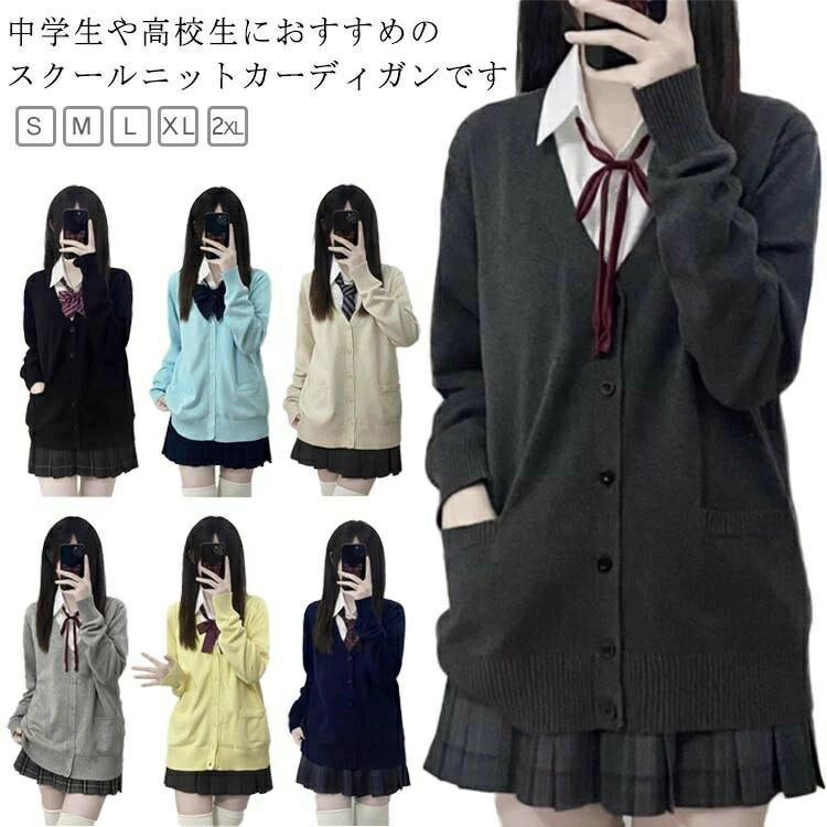 【楽天スーパーSALEポイント10倍】無地 スクール 洗える 制服 ニット Vネック 中学生 トップス スクールカーディガン レディース 長袖 カーディガン 高校生 学校 シンプル 学生 カジュアル 大きいサイズ オールシーズン