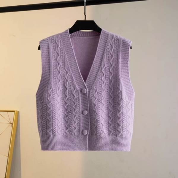 ニット ベスト トップス レディース 春 秋 ショート丈 袖なし Vネック 前開き 伸縮性 カラバリあり ブラック アプリコット ブラウン パープル オフホワイト ダークブラウン 無地 フリーサイズ 旅行 普段使い 日常使い 楽ちん 定番 着回し デイリー 合わせAやすい