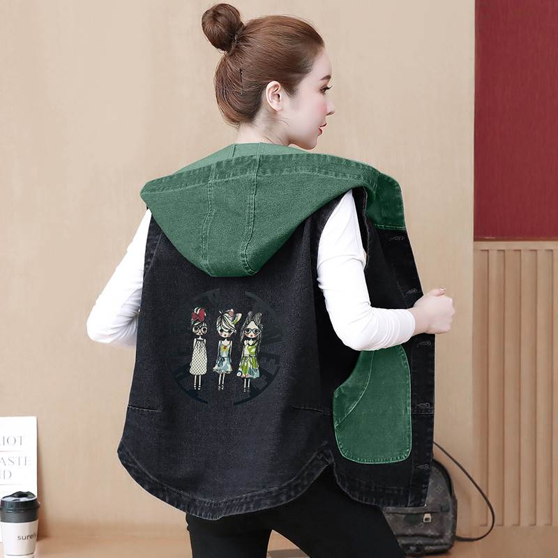 【P2倍&クーポン有】 アウター ベスト デニムベスト ミディアム丈 前開き シンプル バックプリント こなれ感 抜け感 ポケット 大人可愛い 秋 個性的 おしゃれ きれいめ 上品 レトロ 存在感 かわいい ボタン 冬 主役級 かっこいい カジュアル フード付き