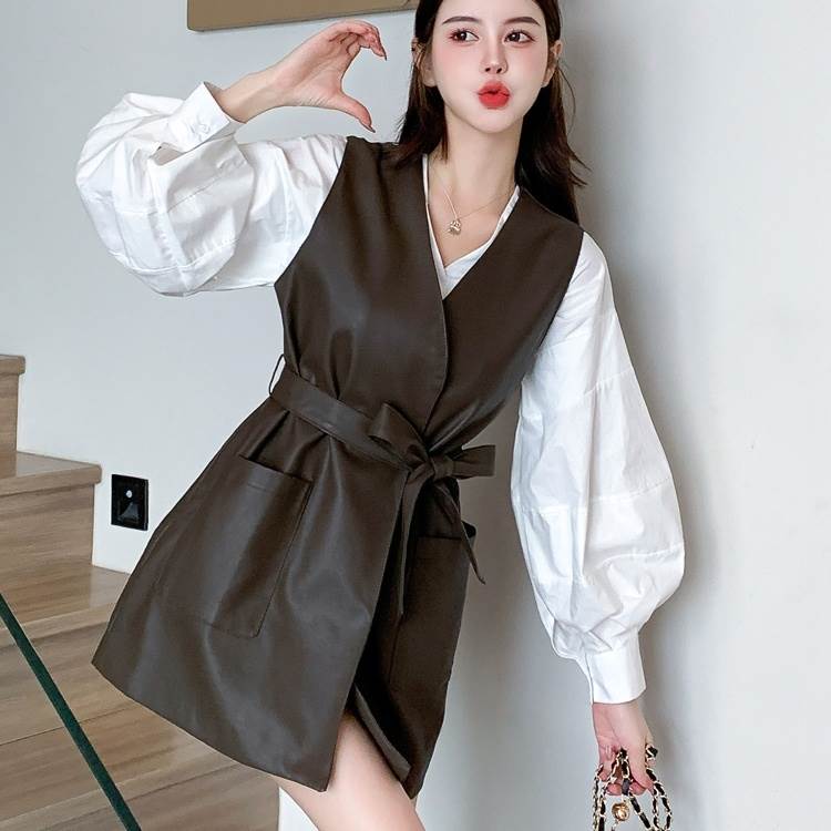 【P2倍&クーポン有】 2点セット シャツ 長袖 Vネック 襟付き 大人可愛い かっこいい 存在感 ミディアム丈 プルオーバー 抜け感 カジュアル シンプル かわいい きれいめ こなれ感 主役級 ショート丈 前開き ベスト 個性的 上品 おしゃれ ボタン