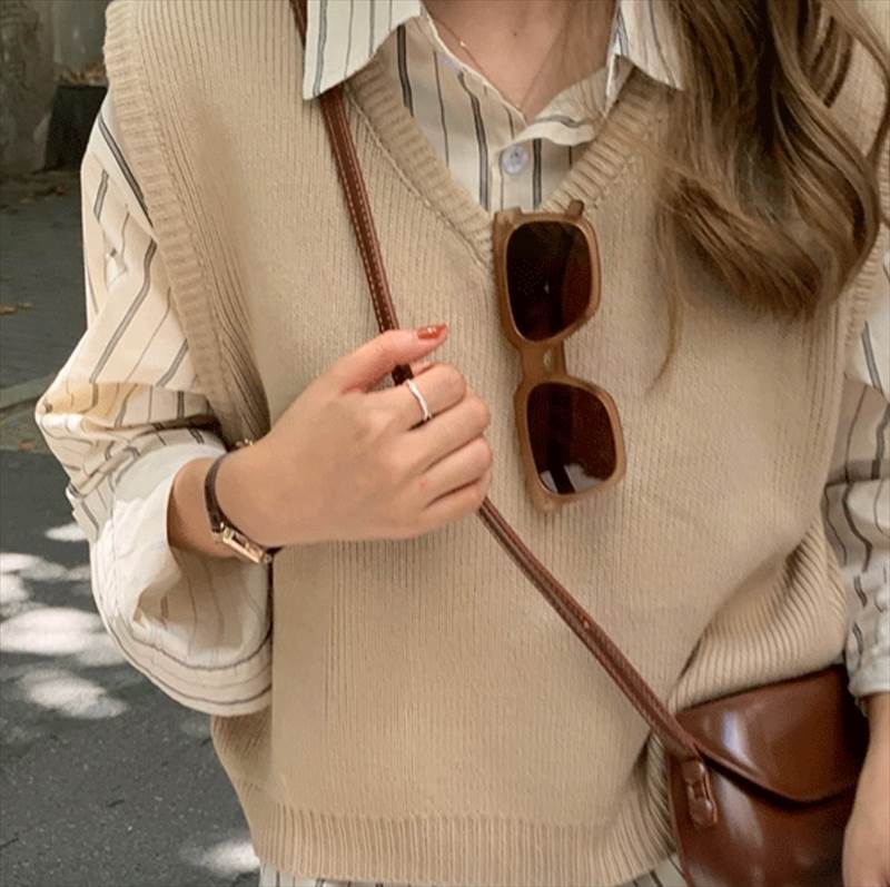 ニット ベスト トップス レディース 春 秋 短丈トップス 袖なし Vネック 襟なし 前開き 伸縮性 カラバリあり ブラック ホワイト ブラウン 無地 フリーサイズ 旅行 重ね着しやすい 流行 トレンド 普段使い 日常使い 楽ちん 若見え 高見え 格上げ デイリー 合わせやすい