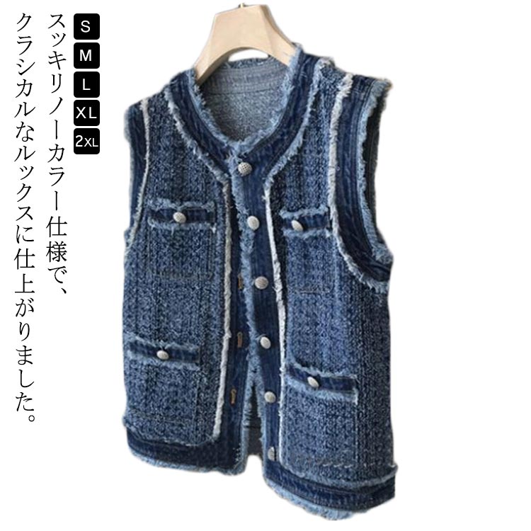 フリンジ レディース ベスト ジレ 袖なし ジャケット ノースリーブ 秋 アウター 大人 お洒落 ツイード 春 カジュアル 母親 ママ 入学式 韓国