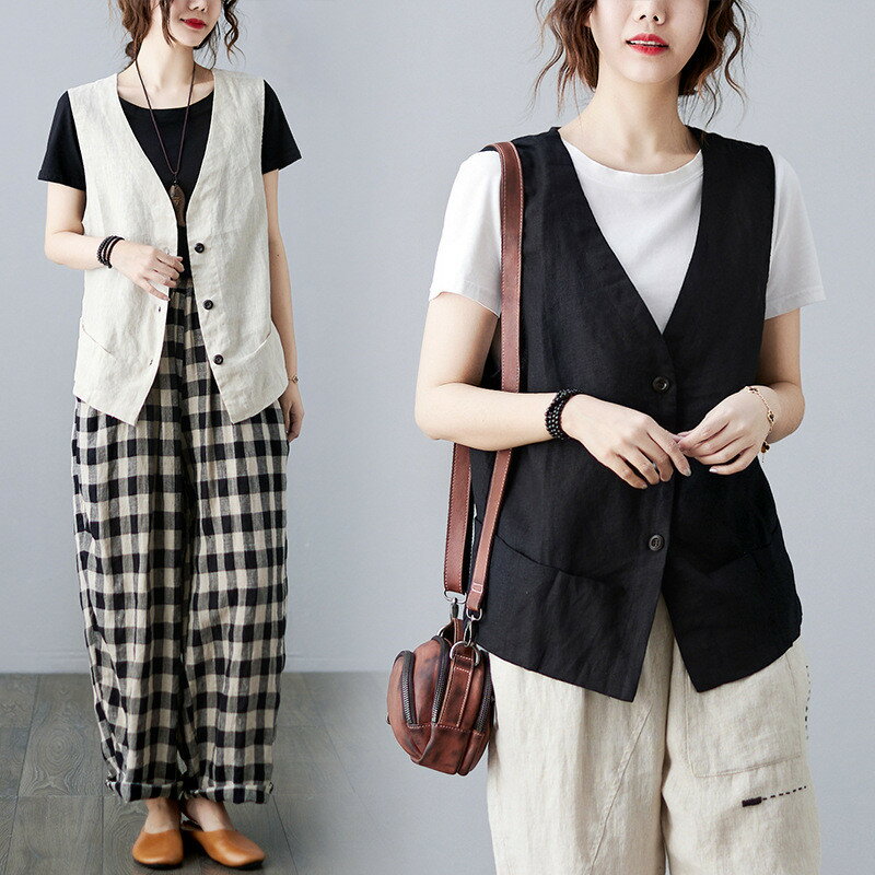 夏ベスト ベスト レディースジレ 綿麻ベスト 春 ノースリーブ ジレ トレンチベスト トップス 前開き レディース 無地 Vネック リネン ショート丈 レイヤード カジュアル 秋 大きいサイズ ゆったり 大人 ナチュラル おしゃれ 綿麻風