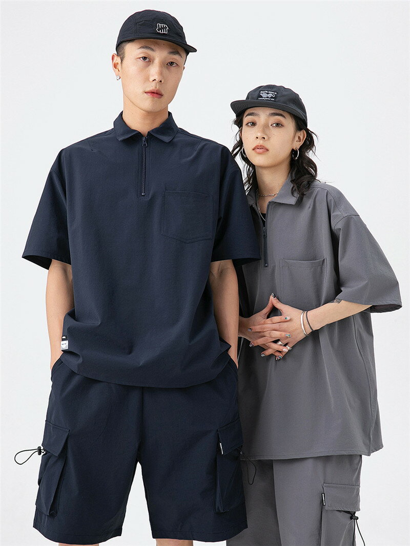 ポロシャツ ゆったり トップス カジュアル 半袖 Tシャツ 送料無料 ハーフジップ お兄系 シンプル カットソー POLOシャツ メンズ 夏服 胸ポケット メンズポロシャツ 無地 オーバーサイズ ゴルフウェア スポーツ 通勤 ビジネス 夏 夏服 ビッグシルエット