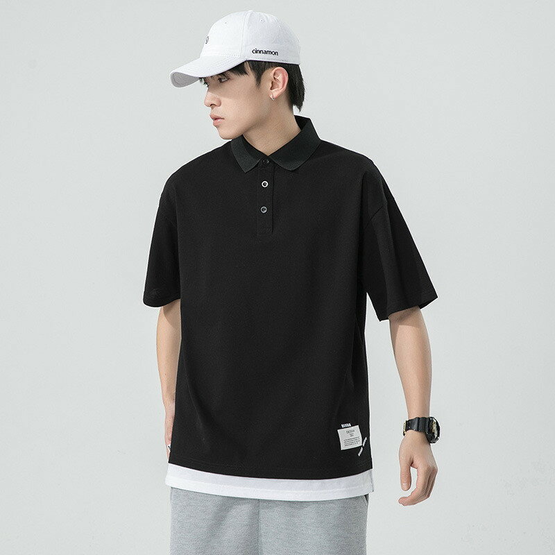 重ね着風 トップス メンズ 送料無料 ポロシャツ フェイクレイヤード 夏 シンプル Tシャツ 半袖ポロシャツ 半袖ポロ トップス POLOシャツ 春 ゆったり カットソー 無地 オーバーサイズ ゴルフウェア スポーツ 通勤 ビジネス お兄系