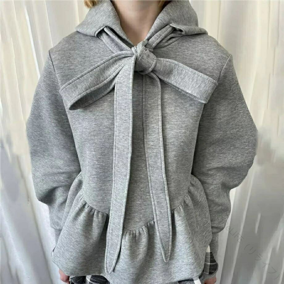 大人可愛いリボンスウェット ゆったりシルエットで体型ストレスフリー 春夏秋のシーズン越し着回し レトロガーリーな雰囲気 20代30代の普段使いに グレーとレッドで差をつける お出かけも家時間もこなす クラシカルなデザイン