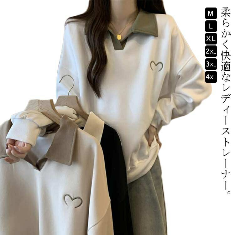 春 レディース トレーナー 柔らかい 長袖 ポロシャツ プルオーバー レディース Vネック 襟付き ゆったり スウェット トップス おしゃれ 大きいサイズ 通勤 通学 日常着