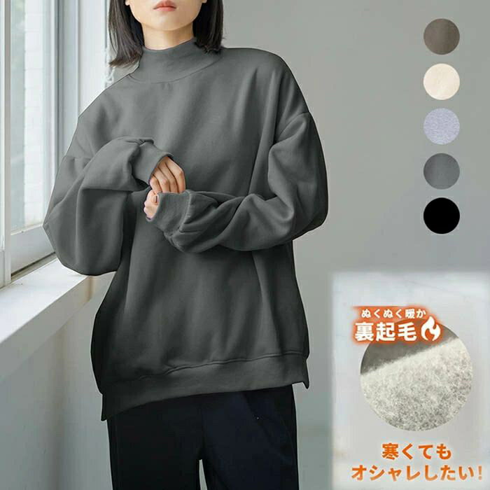 トレーナー プルオーバー 長袖 裏起毛 ハイネック レディース 無地 スウェット スエット 厚手 あったか 防寒 トップス 秋冬 ゆったり ター チュニック ビッグシルエット オーバーサイズ