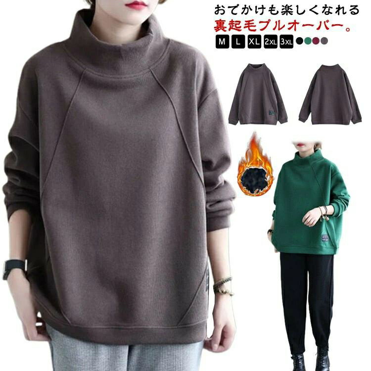 トレーナー スウェット トップス レディース 裏起毛 トレーナー レディース 裏起毛 ハイネック 長袖 大きいサイズ 春 秋 冬 おしゃれ リラックス スウェット トップス レディース スウェットトップス トレーナー 長袖 体型カバー カジュアル シンプル 防寒 暖か 秋冬