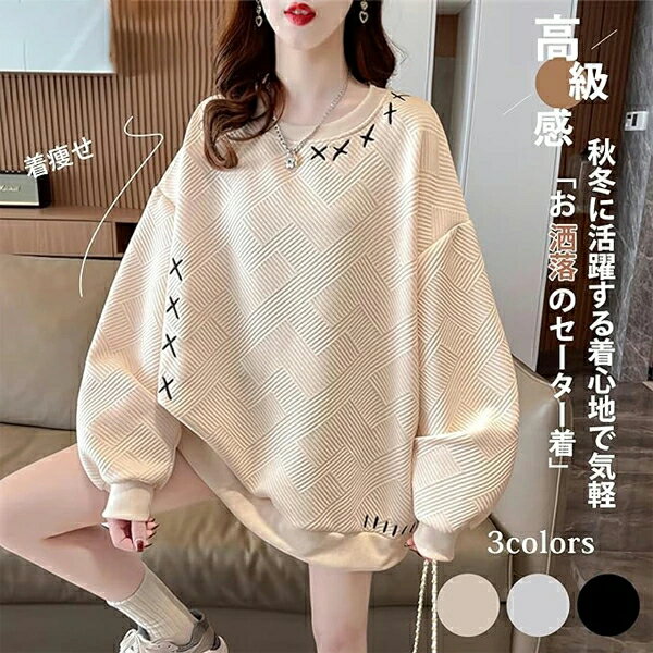 シンプル トレーナー トレーナー 春 秋 スウェット ゆったり 柔らか 冬 クルーネック トップス プルオーバー パーカー きれいめ 長袖 上品 着やせ 体型カバー カジュアル