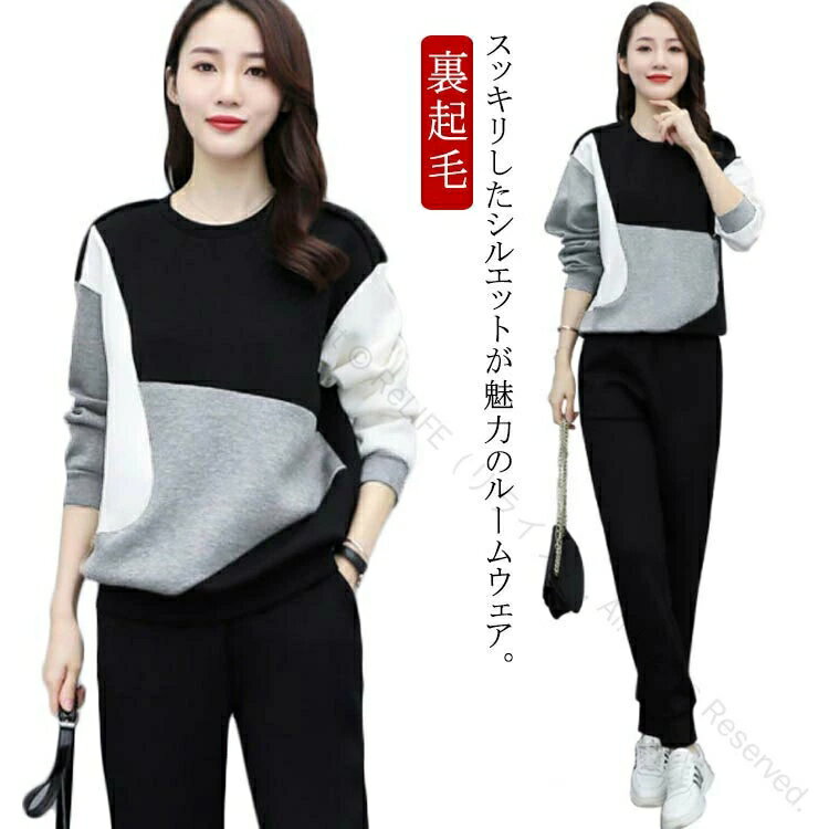 新生活 トレーナー レディース トップス スウェット 裏起毛 クルーネック 無地 アウター プルオーバー 体型カバー 厚め 英文字 通勤 秋冬