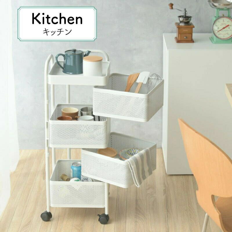 キッチンワゴン スリム キャスター付き 天板付き 4段 360° 回転 収納ワゴン 北欧 バスケットワゴン キッチン収納 台所 収納ラック 収納カート 隙間 通気性 脱着可 完成品 おしゃれ 子供部屋 ランドリー 炊飯器ラック 食材ストック 果物 野菜