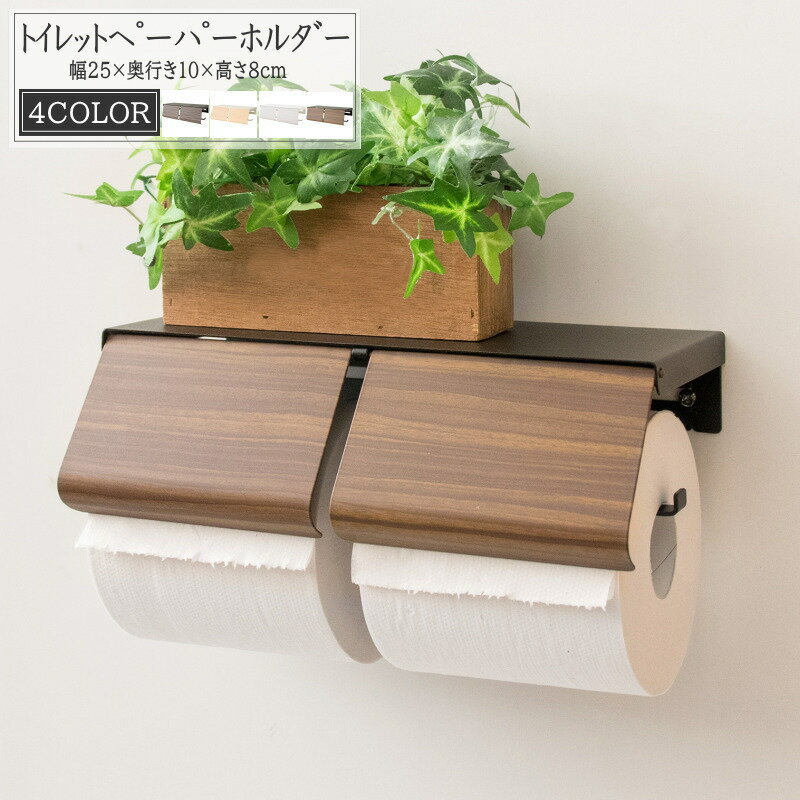 トイレットペーパーホルダー 2連 ダブル スチール トイレットペーパーホルダーカバー ツイン トイレ用品 シンプル おしゃれ 一人暮らし かわいい ブラウン ナチュラル スタイリッシュ トイレットペーパーカバー 木目 インテリア デザイン 収納 飾り棚 カバー 後付け 送料無料