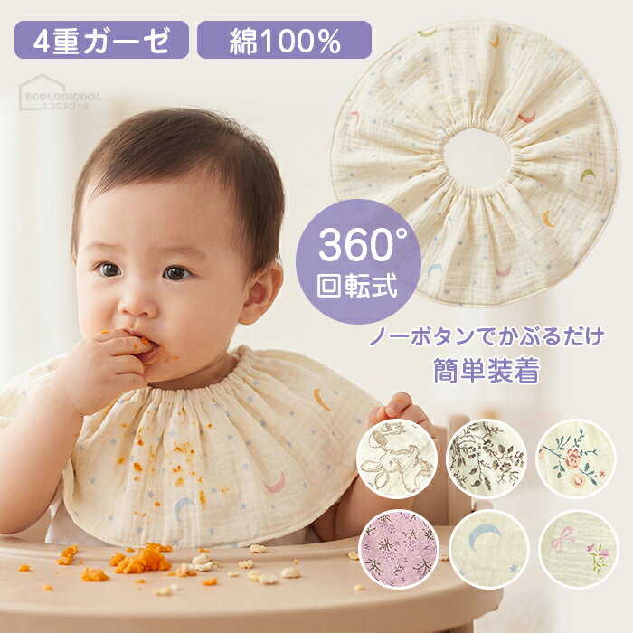 スタイ リバーシブル ベビー 女の子 男の子 ガーゼ よだれかけ 赤ちゃん 可愛い 4層ガーゼ 綿100 刺繍 360 シンプル 柔らかい ベビースタイ お食事スタイ 涎掛け 大判 乾きやすい 吸水性 保育園 新生児 ベビー ビブ