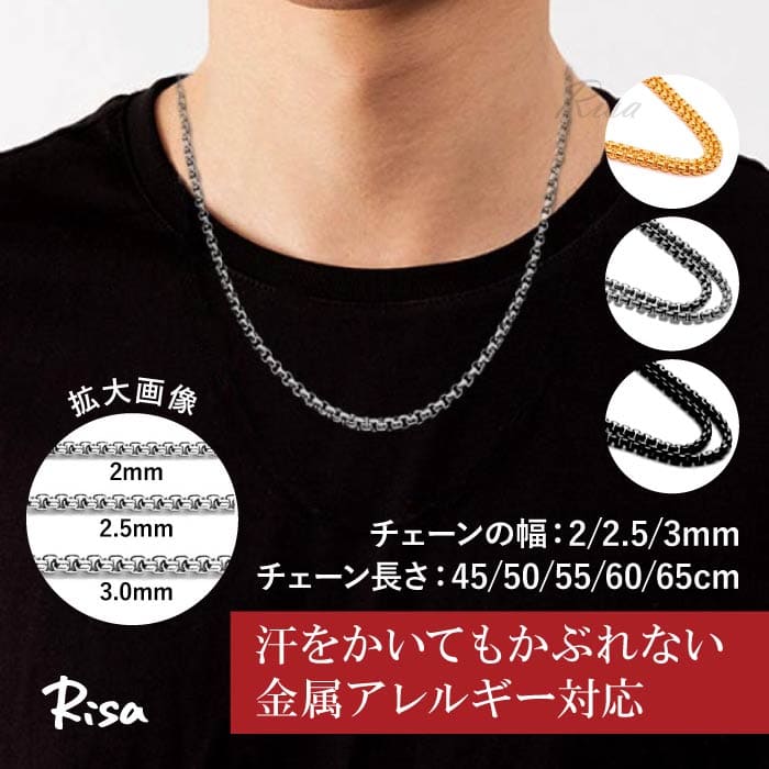あずきチェーン ネックレス 幅 1.6-3mm 45-70cm 金属アレルギー 対応 シンプル メンズ レディース サージカルステンレス カジュアル おしゃれ 結婚式 ダンス