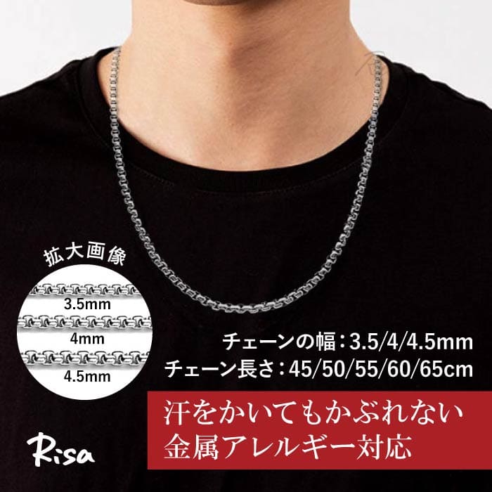 ベネチアチェーン ネックレス 45-65cm 幅 3.5-4.5mm 金属アレルギー 対応 シンプル メンズ レディース サージカルステンレス カジュアル おしゃれ 結婚式 ダンス パーティ