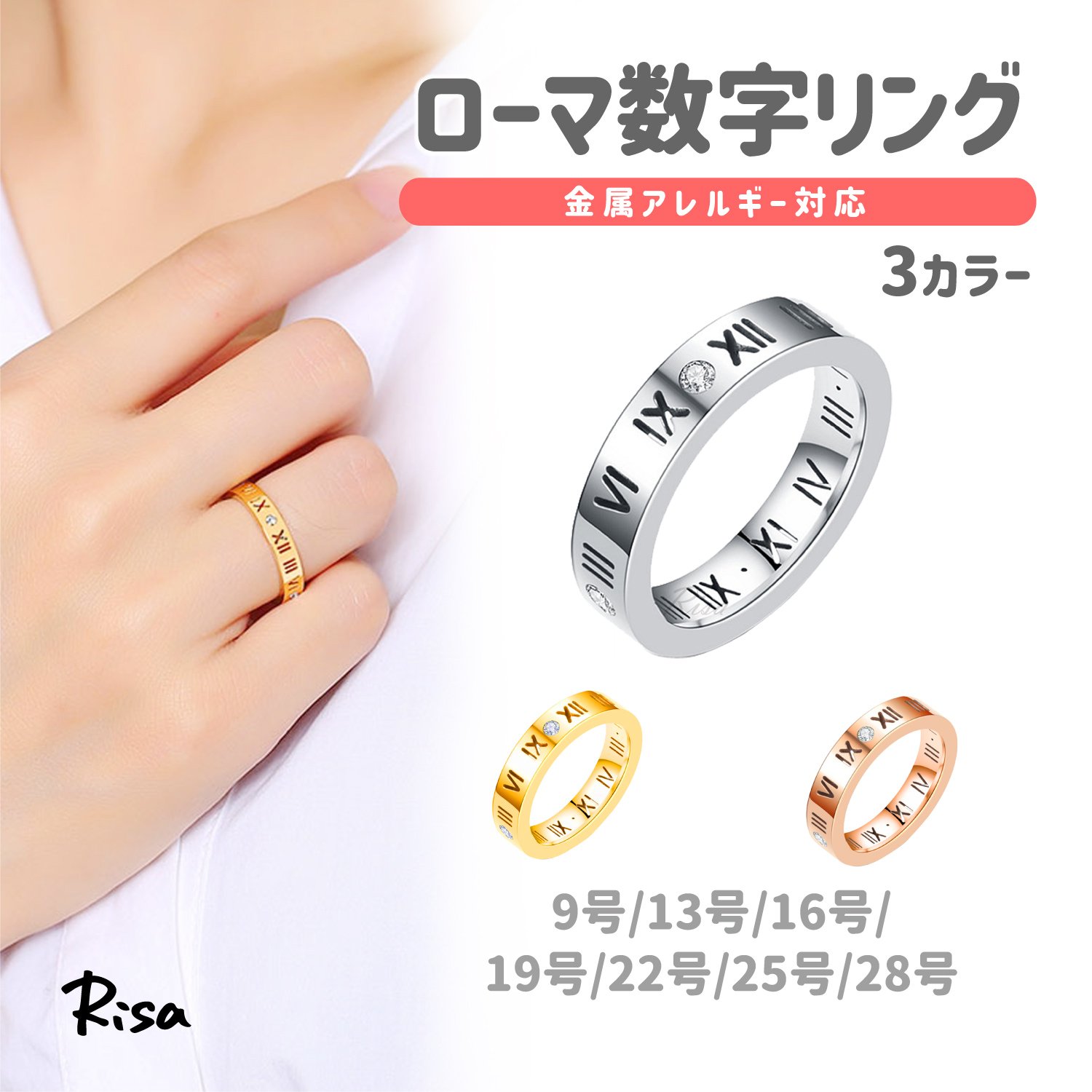 指輪 レディース おしゃれ アレルギー対応 選べる リング アクセサリー つけっぱなし ローマ数字 英字 ジルコニア 石 一粒 サージカルステンレス メンズ レディース 可愛い 人気 高見え