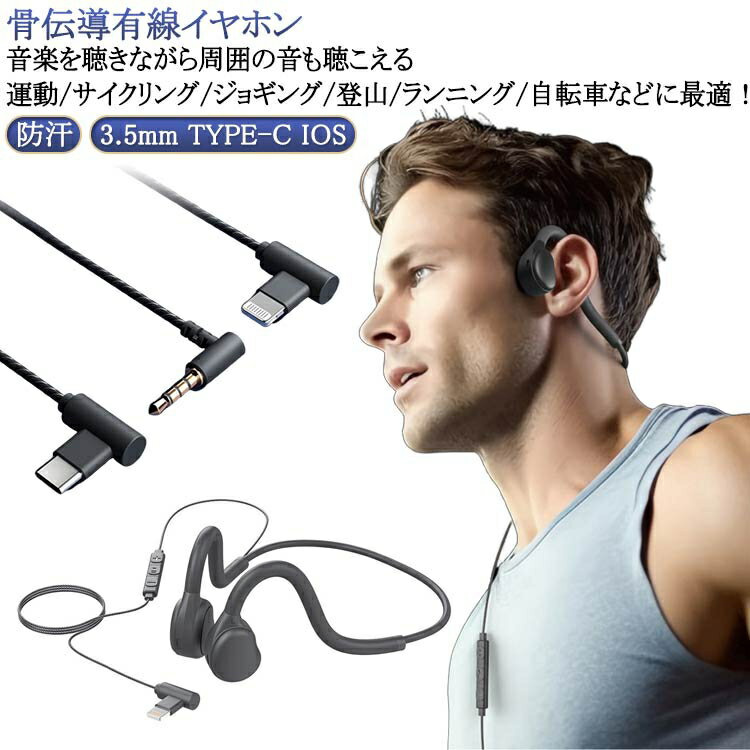 骨伝導 有線イヤホン 開放型イヤホン マイク 骨伝導イヤホン 黒 ブラック イヤホン 有線 オープンイヤー IOS ハンズフリー通話