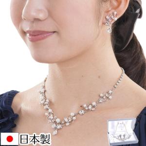 イヤリング ピアス ネックレス 2点セット 結婚式 ウェディング ブライダル ウエディング シルバー 花 高品質 アクセサリー ジュエリー シルバー