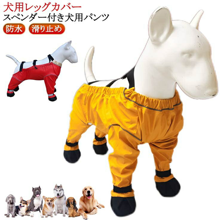 犬用レッグカバー スペンダー付き犬用パンツ サスペンダー付き防水犬用ブーツ 防水 滑り止め 脱げない 調節可能 犬服 犬 レイン